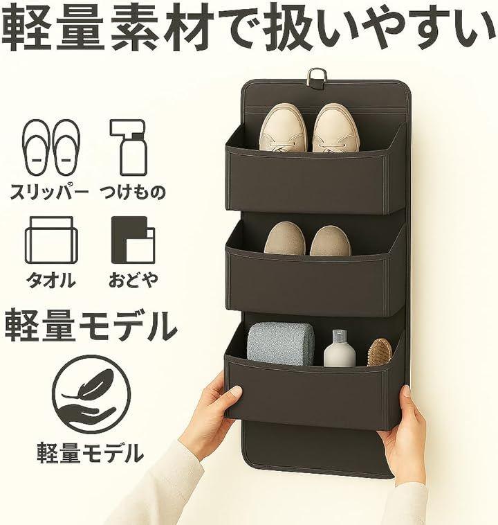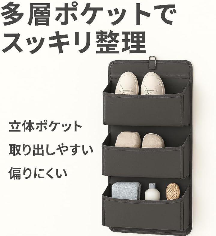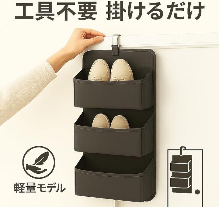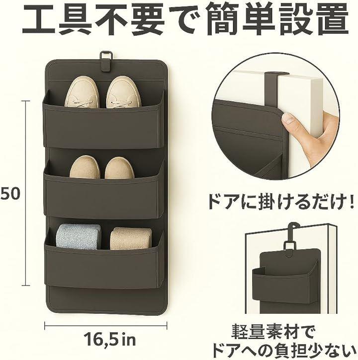 1. ドア裏を活用できる吊り下げ収納設計 ドアや扉の上部に掛けるだけで設置できる吊り下げ式収納バッグです。