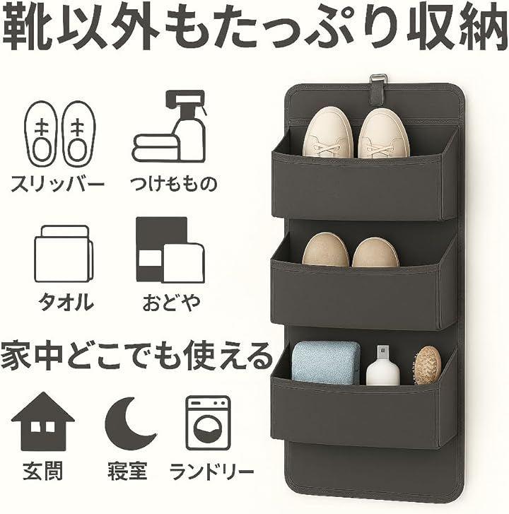 3. 靴以外にも使える多用途仕様 スニーカーや室内履きだけでなく、スリッパ、子ども靴、掃除用品、タオル、衣類小物、日用品など幅広い収納に対応します。