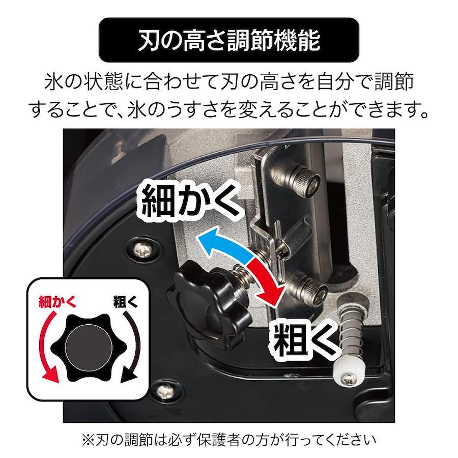 かき氷屋さんのようなふわっと、とろけるような氷。氷をあたためて差的な温度で削る『ヒーター機能搭載』。/冷凍庫から出したばかりの冷たい氷は温度が低すぎ、かき氷を削る理想的な氷とは言えません。「電動わた雪かき氷器」は氷の表面温度を最適な温度であたためながら削るため、ふわっと、とろける食感のかき氷を削ることができます。/刃の高さ調節機能で氷の状態に合わせて刃の高さを自分で調節することで、氷のうすさを変えることができます。/本体を分離してスタッキング収納でき、使用しない時はコンパクトにできます。製氷カップLサイズ2個付き。/定格電圧:AC100V、定格周波数:50Hz/60Hz、定格消費電力:115W、コード長さ:(約)1.1m