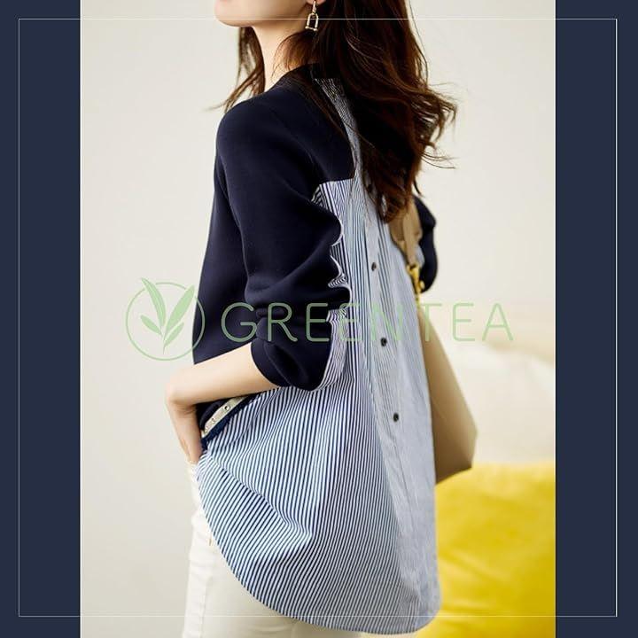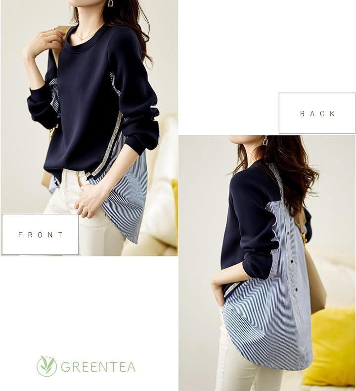 紺色トレーナーとストライプシャツのドッキングデザインになります。