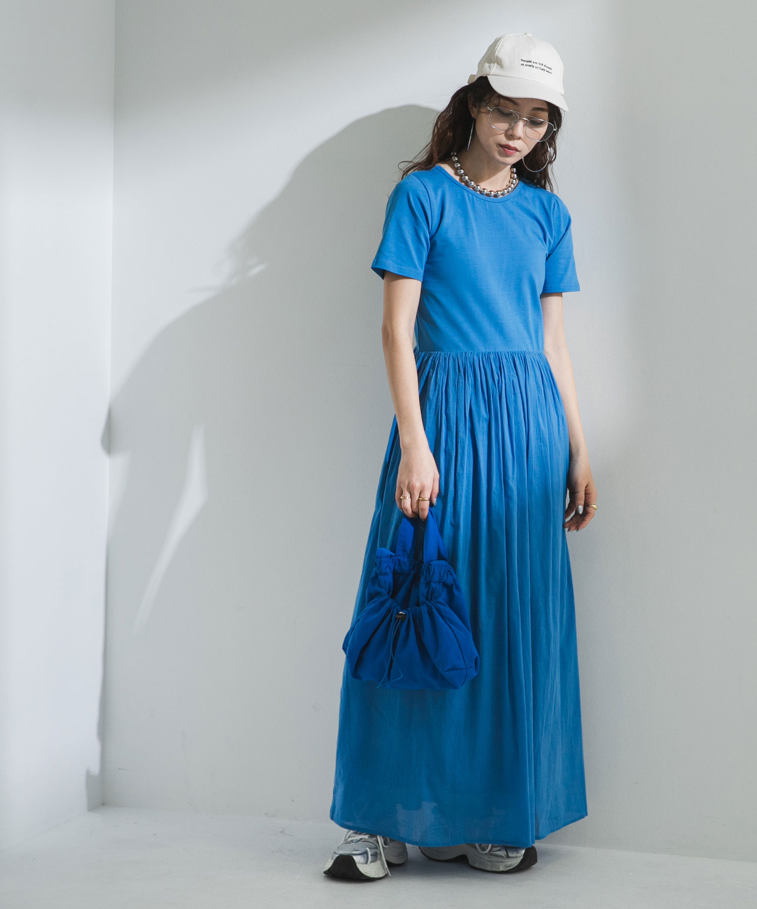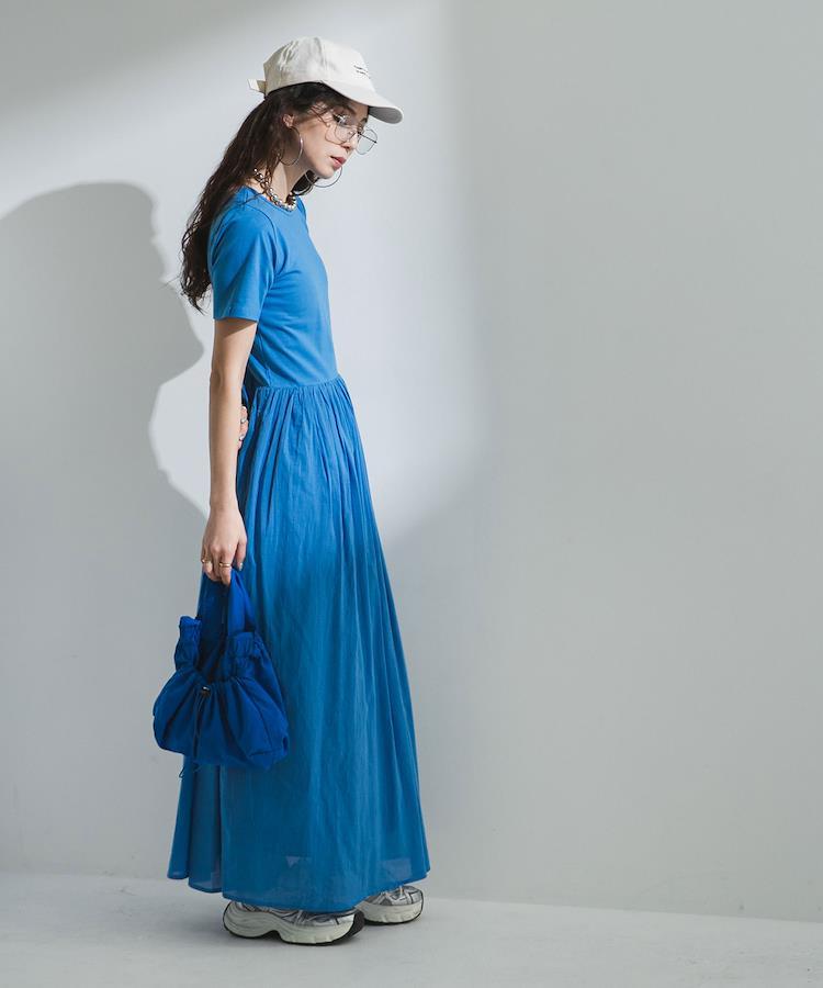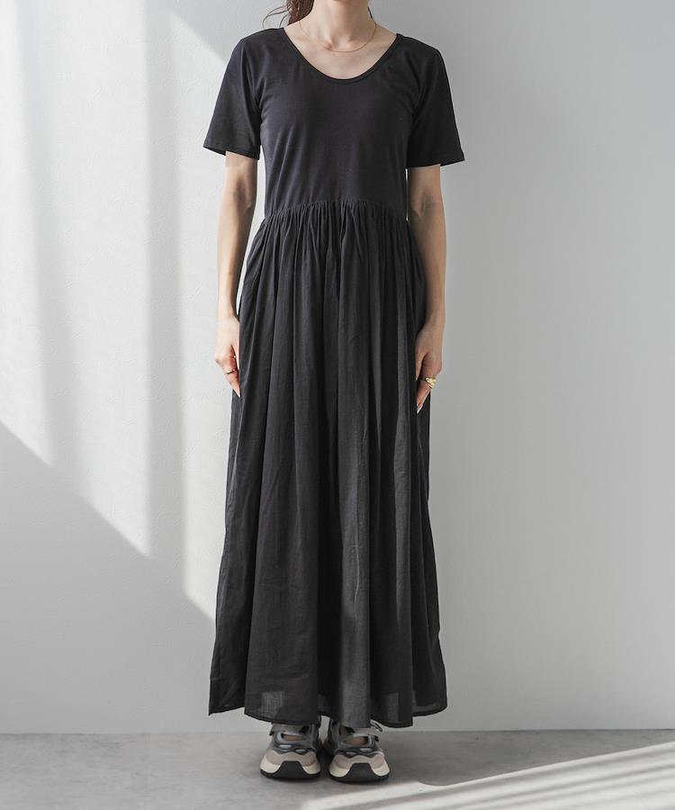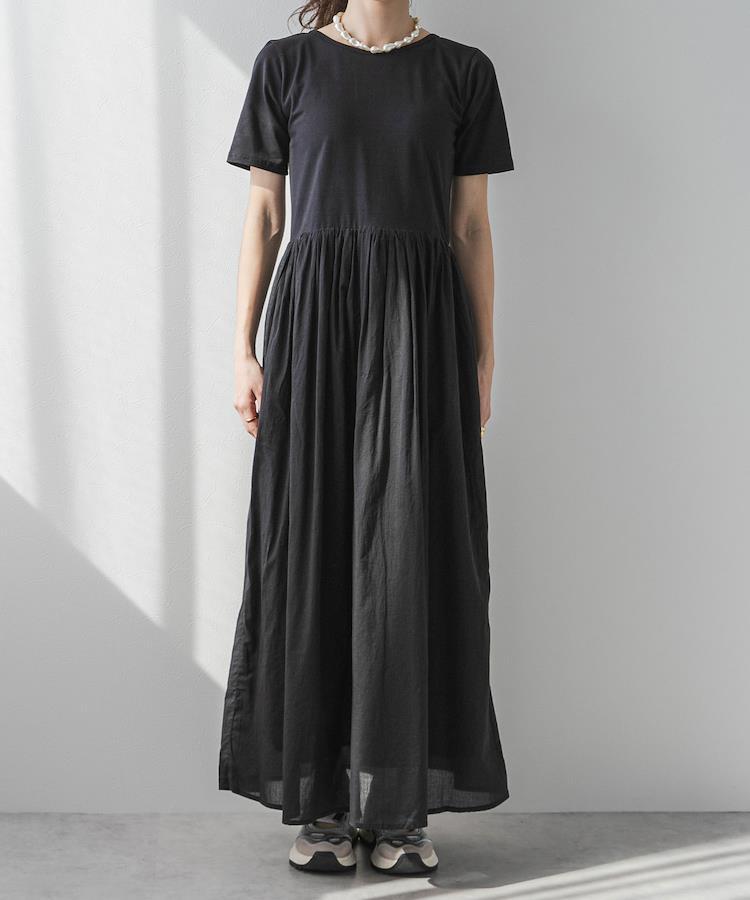 カットソーとのドッキングデザインがカジュアルな雰囲気で楽しめます。