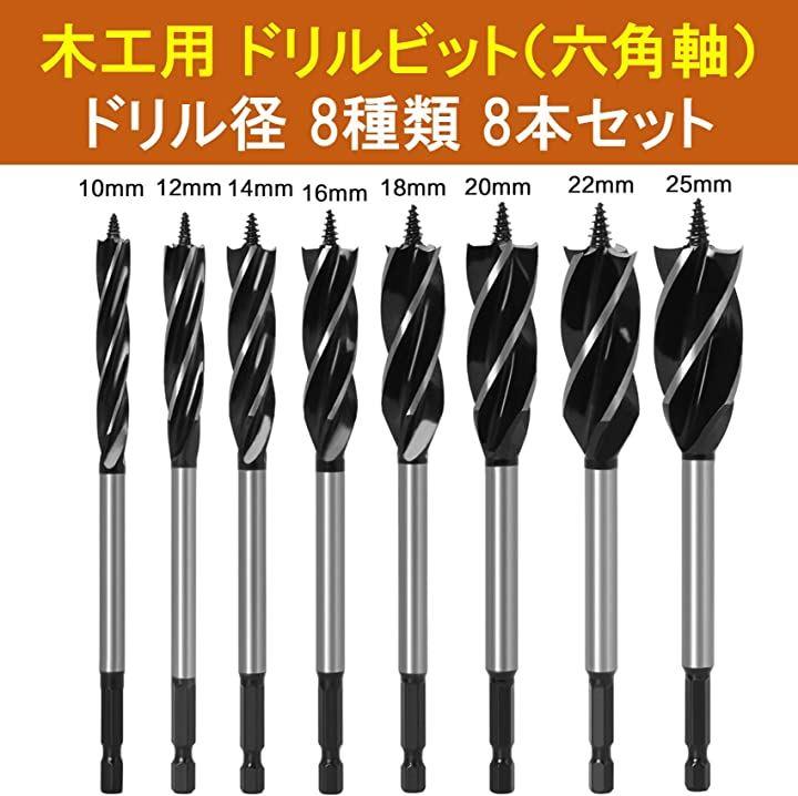 ・木工用ドリルビット ドリル径8種類8本セットです。