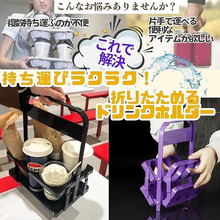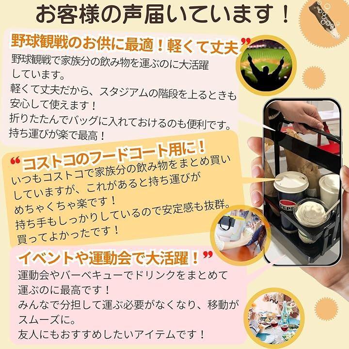 「特徴」 4本同時に運べる:ドリンクのまとめ運びが可能。取り出しもスムーズで、移動がラクに。