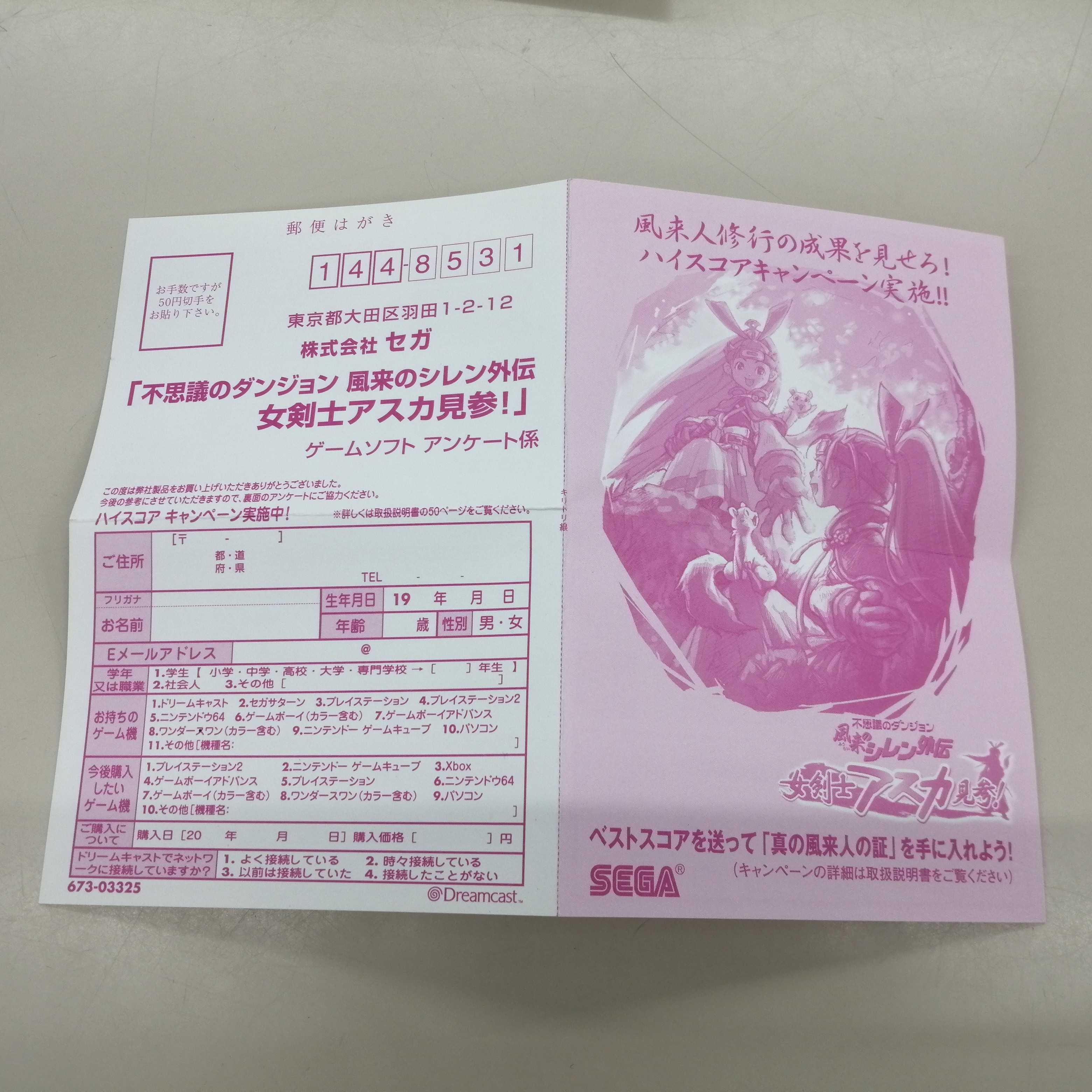 ドリームキャストソフト 不思議のダンジョン風来のシレン外伝女剣士アスカ見参 ! セガ ドリームキャストソフト セガ不思議のダンジョン風来のシレン外伝女剣士アスカ見参 !ドリームキャストソフト■注意事項店舗詳細ページに記載内容をご確認の上、ご注文いただきますようお願いいたします。