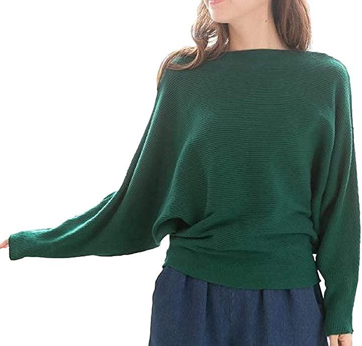 ドルマンスリーブ&ボートネックの大人可愛いヘビロテニット。