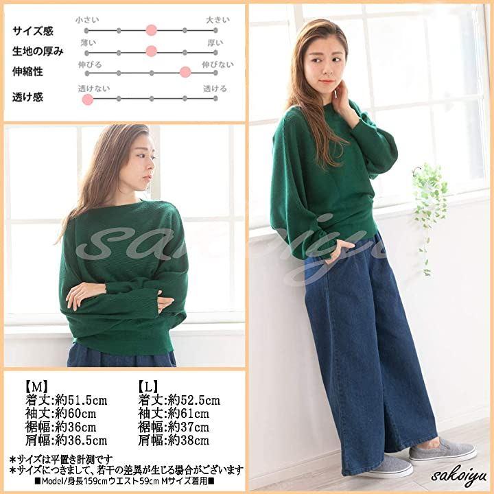 ドルマン袖でも、程よいコンパクトなシルエットで女の子らしい。サイズ(*平置き計測)M/着丈約51.5cm袖丈約60cm裾幅約36cm肩幅約36.5cmL/着丈約52.5cm袖丈約61cm裾幅約37cm肩幅約38cm