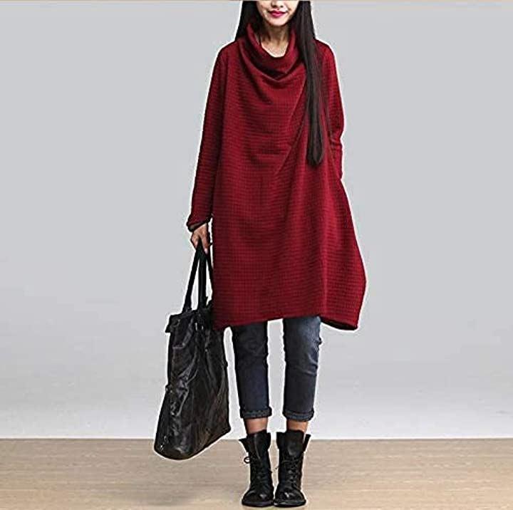 *ワッフル地で柔らかい今年らしいビッグシルエットのハイネックトップス*