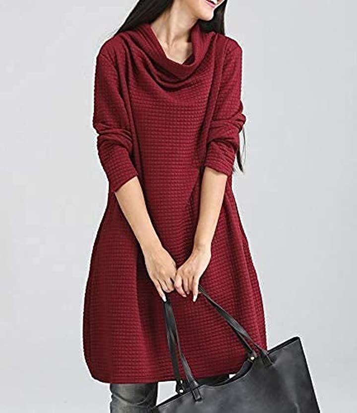 [エンプティオ]ドレープaラインチュニックワンピドロップショルダーゆったりネックレディース