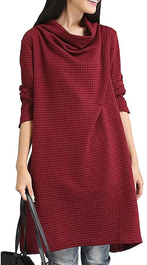 *すっぽり後ろが隠れる長さでショートパンツを履いてワンピース風にもスキニーパンツと合わせてチュニックとしても着回せます*