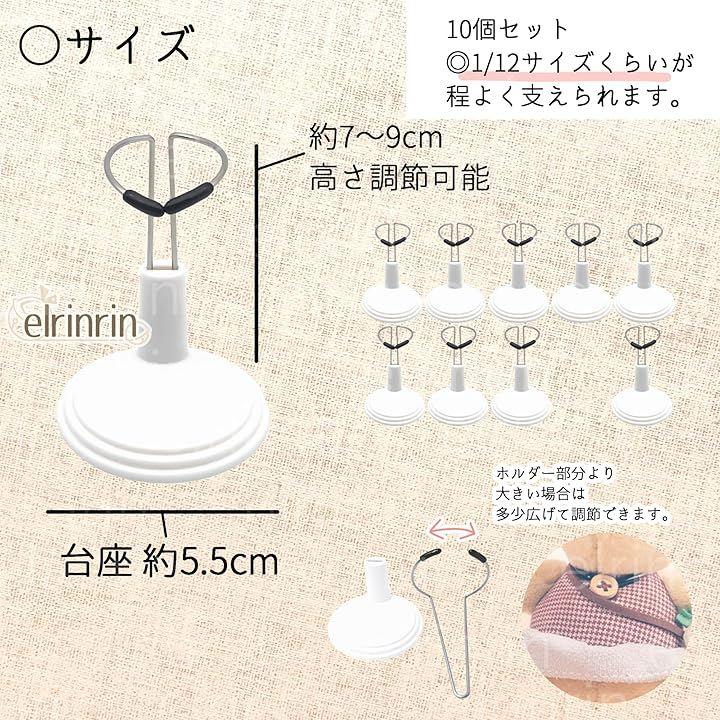 サイズ:15cm(高さ約7~9cm調節可能)、台座約5.5cm サイズ的には、1/12のドールくらいが程よく支えられます