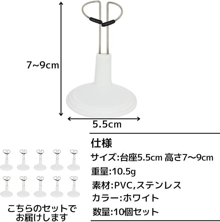 「仕様」サイズ:台座5.5cm 高さ7~9cm、重量:10.5g、素材:PVC、ステンレス、カラー:ホワイト、数量:10個セット
