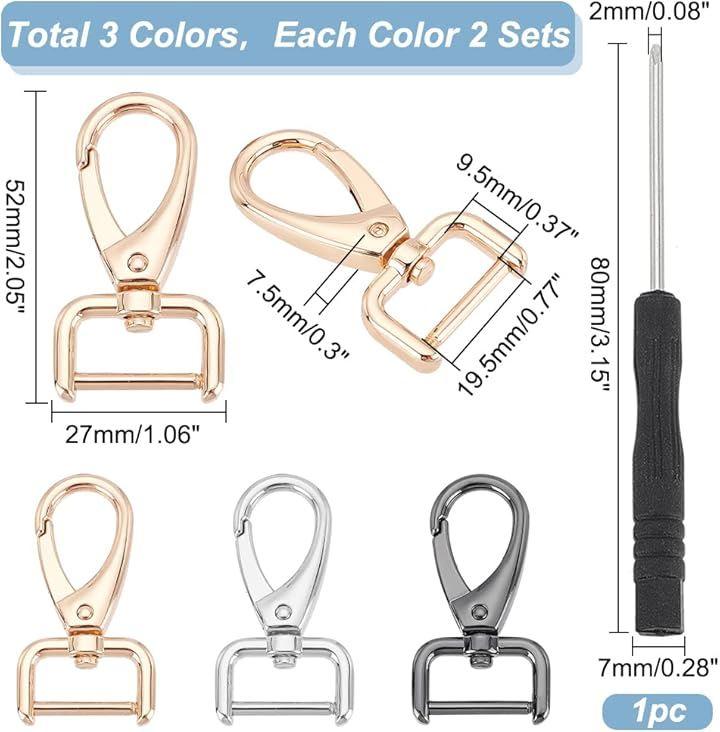 3色のナスカン:ゴールド、シルバー、ブラックの3色のメタルナスカン、セットには、取り外し可能な合金のナスカン6個とドライバーが含まれています。
