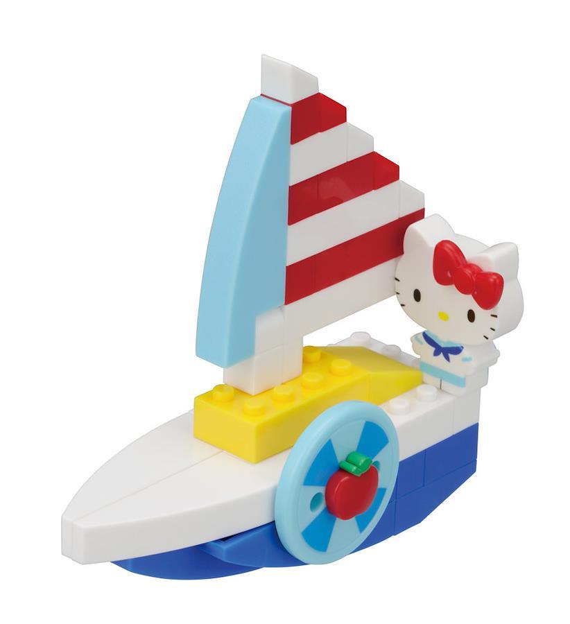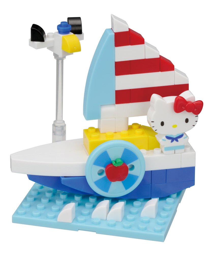 nanoblock+ (ナノブロックプラス) でハローキティの街をつくろう。Nanoblock+ (ナノブロックプラス) は、まだナノブロックでは遊べない小さなお子様でも簡単に遊べて、従来のダイヤブロックよりもリアルに完成度の高い作品を作ることができるサイズと特長を持ったブロックをお届けしたい、その事を第一に考えて開発された新しいブロックです。ハローキティのかわいいヨットが作れます。キティのリボンはりんごとも付け替え可能です。