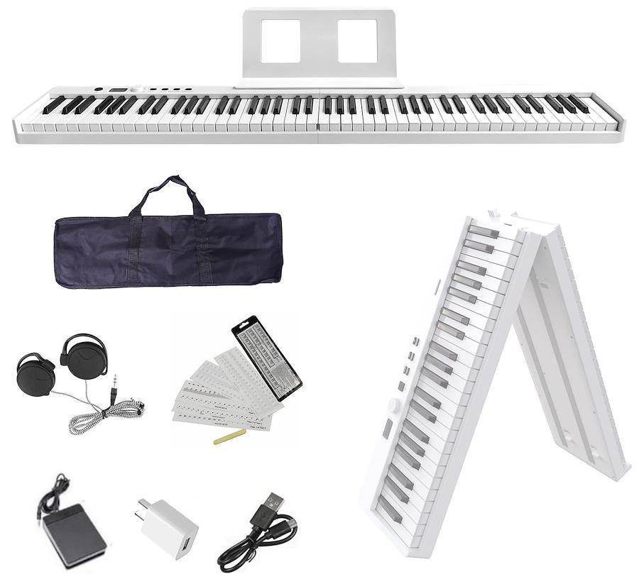 4000円超大クーポン限定発行中、是非逃さないでください。【ニコマク×折畳式電子ピアノ=SWAN-X誕生】この度、さらにコンパクトさを重視し、折畳式電子ピアノの技術を導入。折畳み前のサイズ:126*20.9*6㎝、折畳み後のサイズ:63*20.9*12㎝【4KG、充電型】約4キロの超軽量型で子供にも簡単に持ち運べます!大容量バッテリ内蔵で長時間の利用ができ、ピアノレッスンにも外出の練習にも最適。 【北欧風設計、充実な付属品】和色の『純白』を基調として、2メートル特化の練習用イヤホンや初心者用の剥がしやすい透明鍵盤シールが付属しています(剥がしても剥がし跡が残りません)【折り畳み式でも本物のピアノと同じ鍵盤サイズ】鍵盤サイズは本物のピアノと同じで、黒鍵:11.5mmの幅、8mmのストローク 白鍵:22mmの幅、10mmのストロークで、折り畳み式でも生ピアノに似ているタッチ感覚を実現。 【フランスのDREAM音源チップ&2つのスピーカー搭載】フランスのDREAM音源チップを採用し、低音域も積極的に出っており、繊細なサウンドが出てきます。それに、4Ω 2W高出力のスピーカーを本体の両側に装備することで、パワフルな鍵盤音が出力でき強い表現力を実感できます。【たくさんの設備と接続可能】イヤホン、スピーカー、サスティンペダル、MP3音源などたくさんの設備と接続でき、利用方法は豊富! 【多彩な機能&MIDI対応可能】折畳式でも普通の電子ピアノと同じ、録音、テンポ、2人鍵盤やメトロノーム等多彩の機能が備え、電子ピアノ初心者には楽に利用できます。USBケーブルでPCに接続し、本製品と連動できていろん機能やソフトウェアを利用することができます。【内容品】本体、譜面台、イヤホン、初心者用鍵盤シール、ペダル、専用ケース、充電器、Type-Cケーブル、日本語取扱説明書。 【12月間保証期限&特別な24時間対応サービス】お買い上げる日より、12ヶ月以内日本国内チームから安心な品質保障サービスを提供いたします。24時間以内対応させていただきますので、不具合・返品・返金等の件はぜひお気軽にご連絡ください。★お問い合わせる方法:ご購入の商品の詳細ページで、在庫状況の下に表示される出品者名をクリックし、右上の「質問する」ボタンをクリックして、弊社までお問い合わせください。
