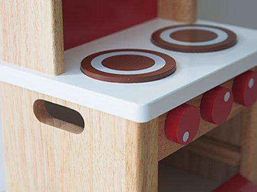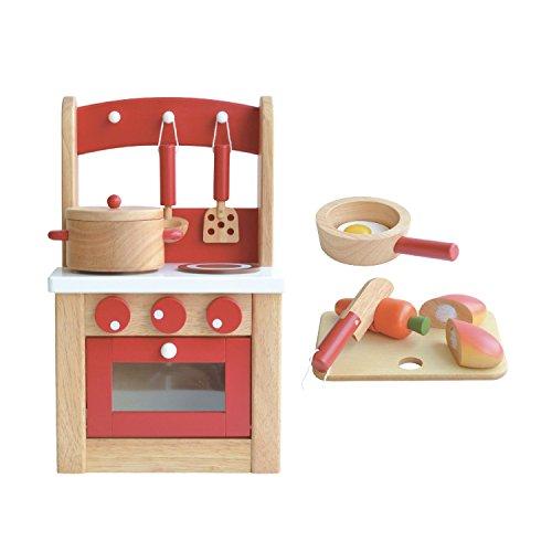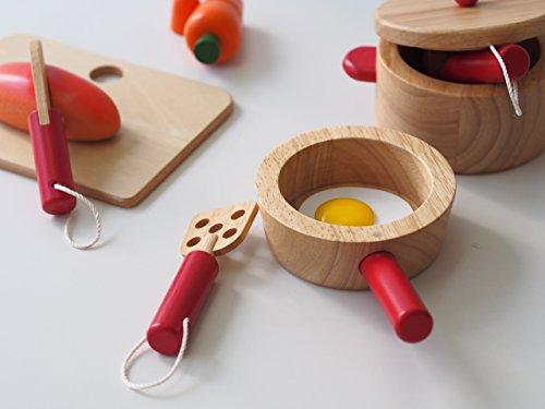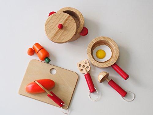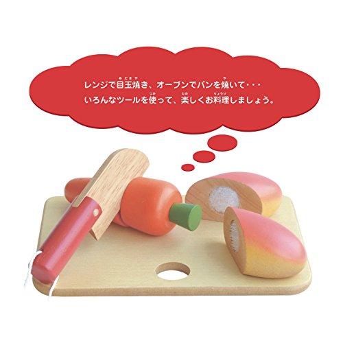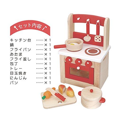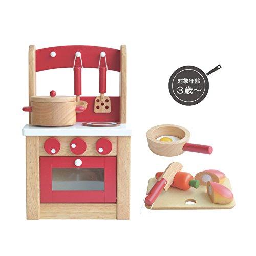 赤と白の色合いがカワイイキッチンセットです。ニンジンとパンは包丁でサクッと切ることが出来ます。