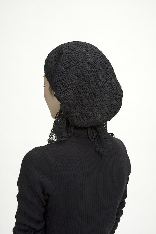 ★着用簡単!ニットのお洒落帽子!*急な外出や、お客様の対応に、ヘアースタイルが気になる時に重宝します。*レース編みで通気性もいいので、むれません。*後ろ部分にだけゴムがついているので、額にあともつきません。結び目風バッスタイル。