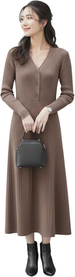 1枚で着ても、重ね着しても決まる、秋冬に欠かせないニットワンピースです。