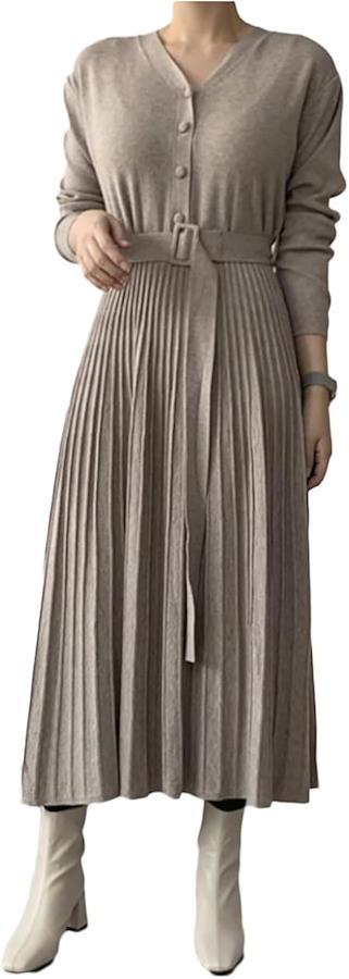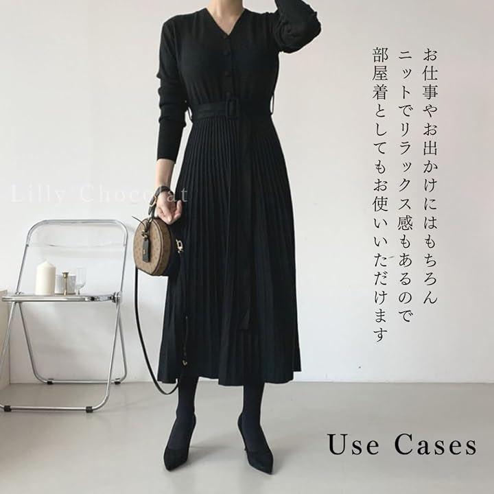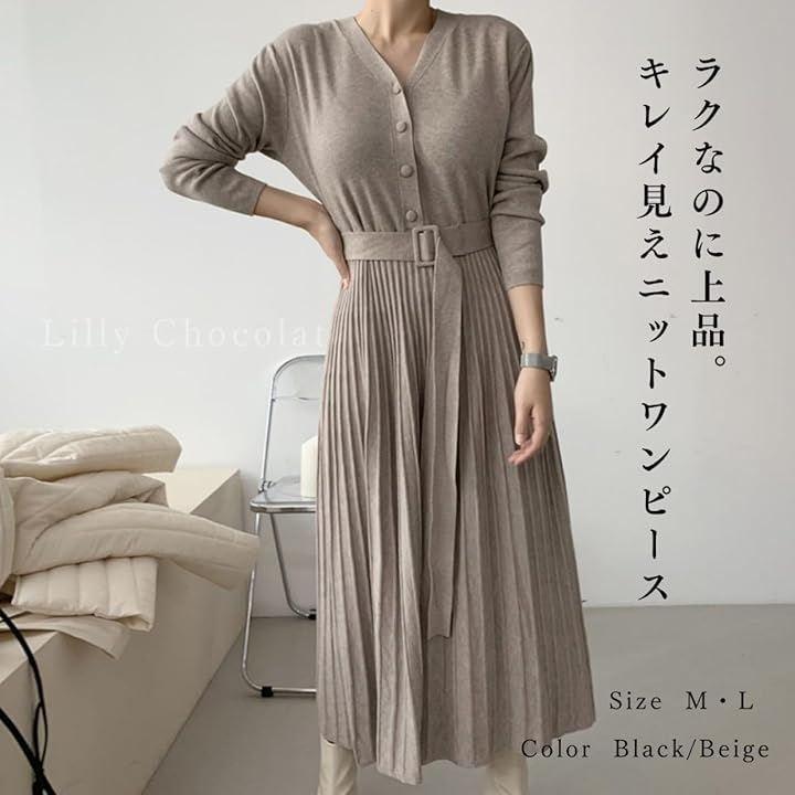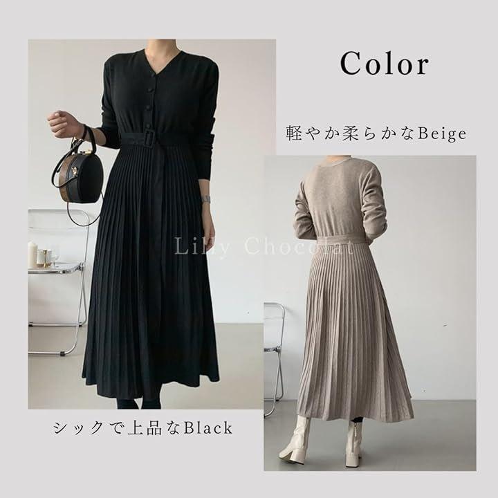 シンプルながらも女性らしいaラインやプリーツデザインが特徴のニットワンピースになります。