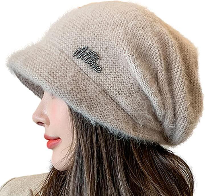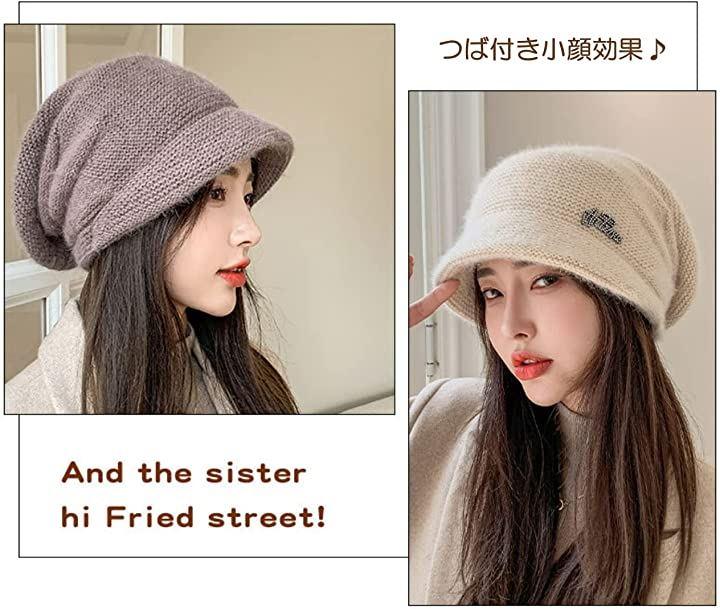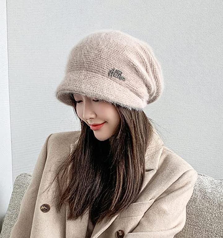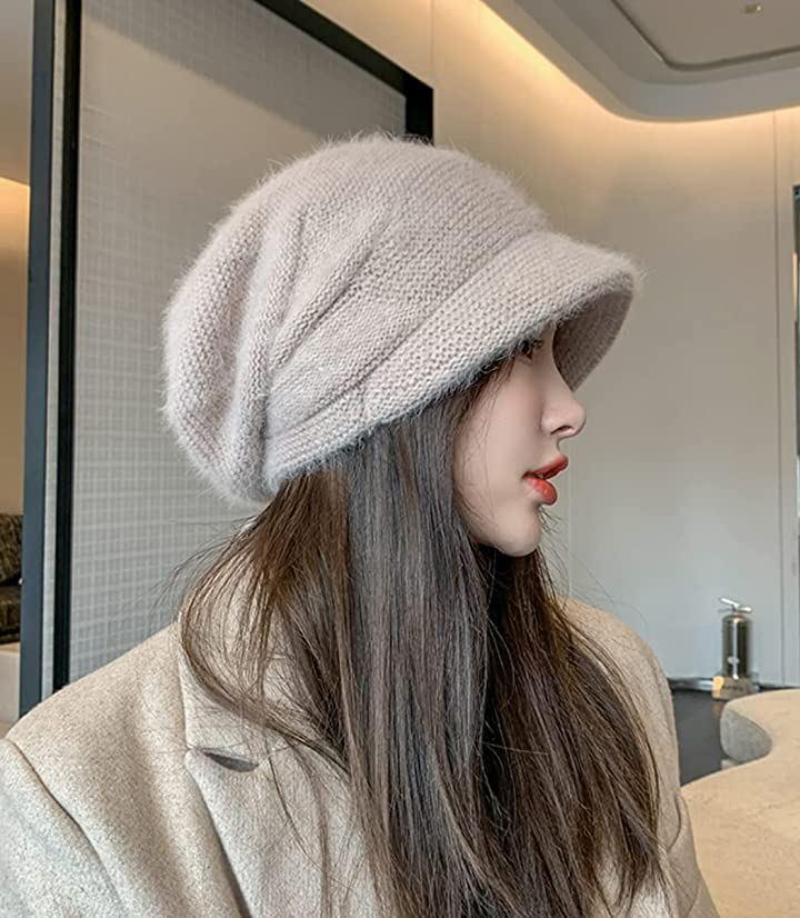 Knit hat, newsboy cap, knit cap, with brim, mohair, warm, cold protection, heat retention, cute, stylish, fluffy hat