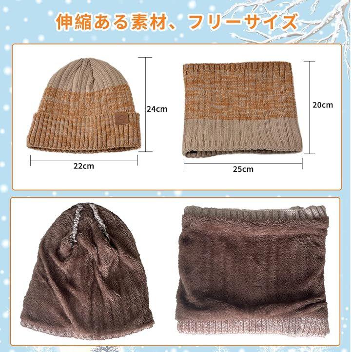 帽子サイズ:24cmx22cm、ネックウォーマーサイズ:25cmx20cm、頭囲:55-60cm。