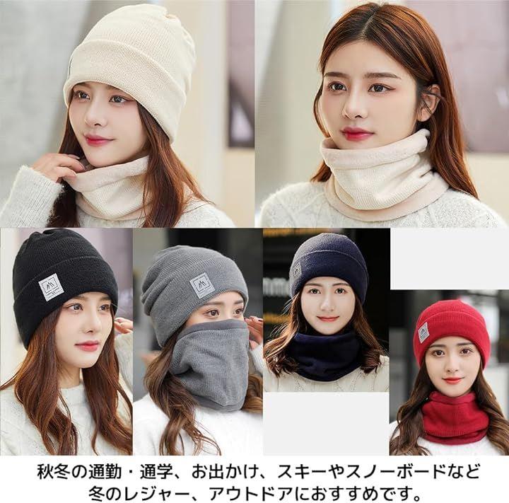 ・秋冬の通勤・通学、お出かけ、スキーやスノーボードなど冬のレジャー、アウトドアにおすすめのレディースニット帽とネックウォーマーセットです。