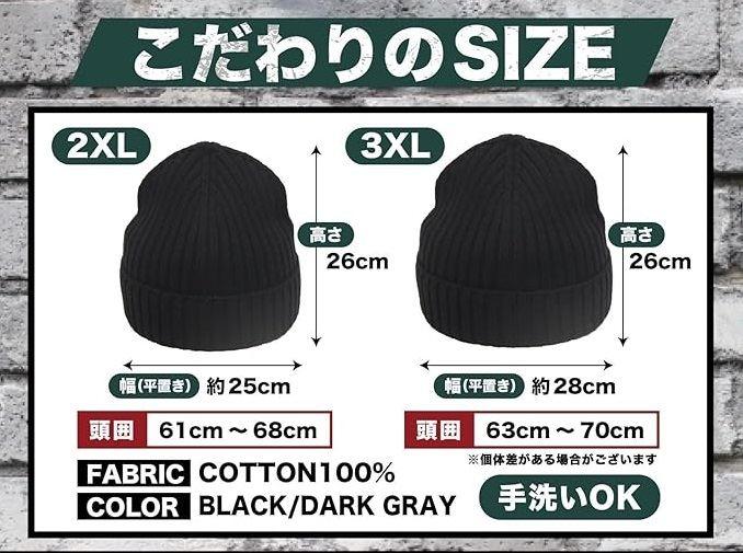 3XLよりも少し小さい(ちょっと)大き目なニット帽です。