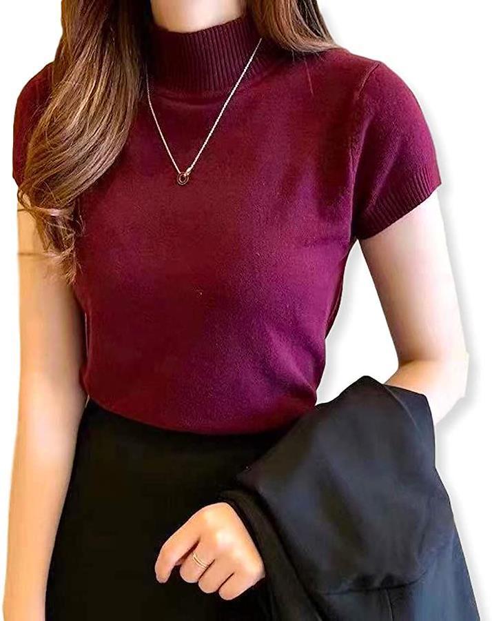 柔らかハイネックトップスニットハイネックトップス半袖セータータートルネックカットソーレディース