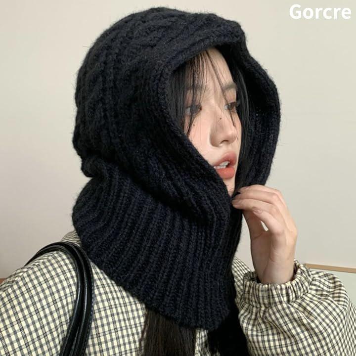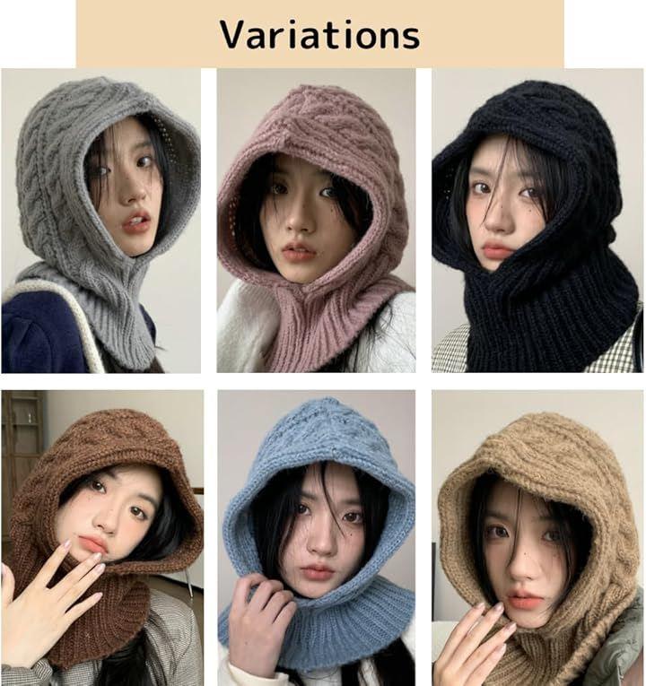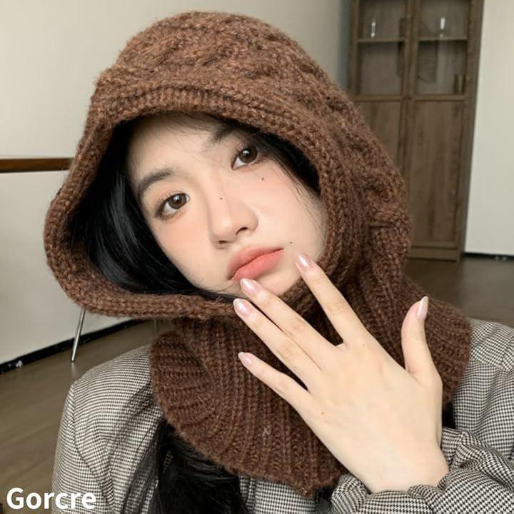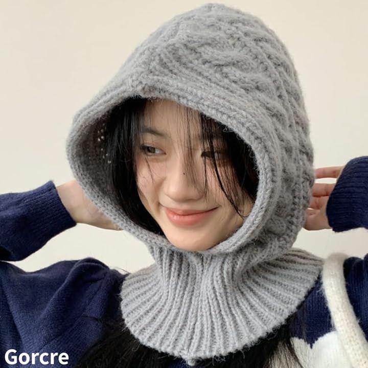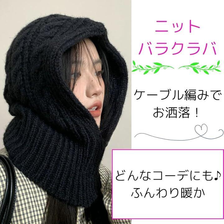 「あったかトレンドアイテム」パーカーを着ない日はこれでおまかせ。ふんわり柔らかで暖かい、フードとネックウォーマーの一体型。ケーブル編みがカジュアルで可愛い。バラクラバのお届けです。
