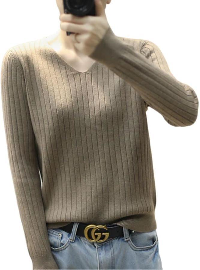 Knit, ribbed knit, women's, beautiful, sweater, top, long sleeves, tight, V-neck, thin, plain