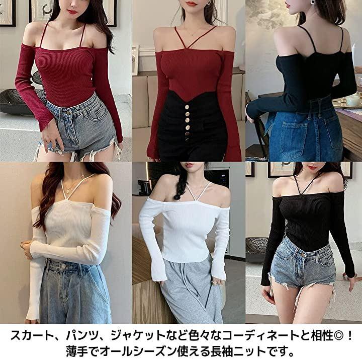 リブ編みですので伸縮性があり、体型を選ばず女性らしいボディラインを魅せることができる肩出しトップスです。