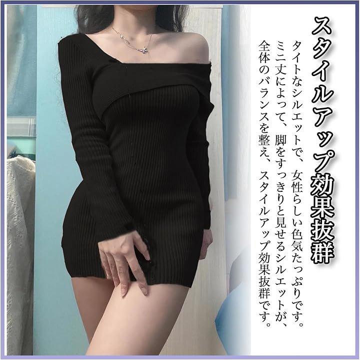 デコルテラインを美しく引き立てるオフショル風デザインが、大人の色気を漂わせるニットワンピース。