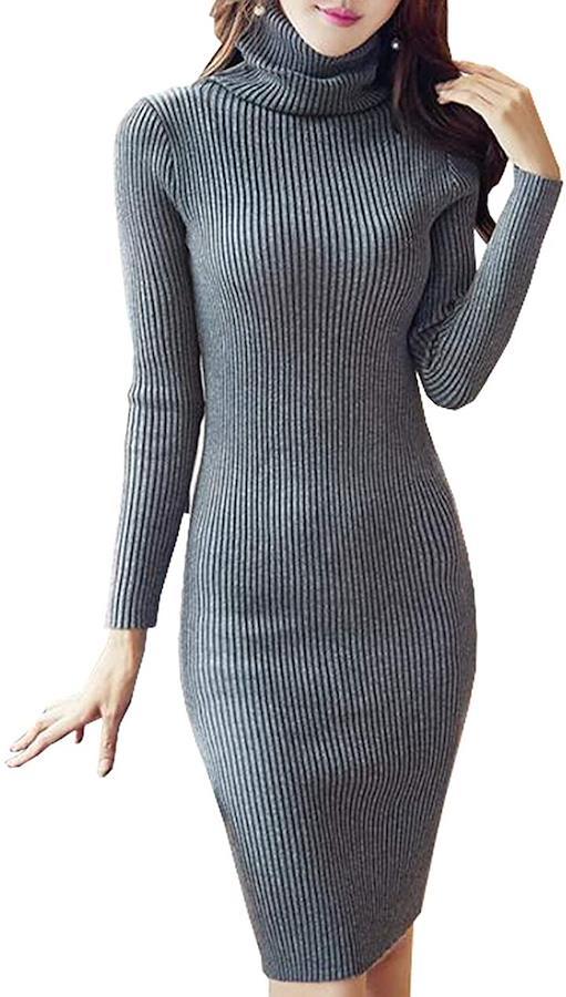 Ptikaニットワンピースレディース秋冬タートルネックタイト長袖アクサセリー付き