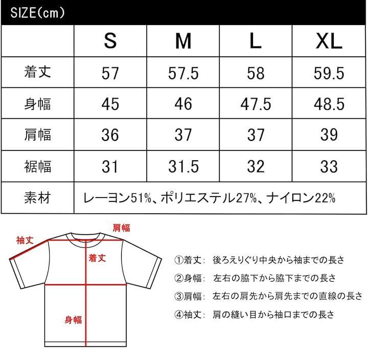 「サイズ」「S」着丈57 / 身幅45 / 肩幅36 / 袖丈31・「M」着丈57.5 / 身幅46 / 肩幅37 / 袖丈31.5・「L」着丈58 / 身幅47.5 / 肩幅37 / 袖丈32・「XL」着丈59.5 / 身幅48.5 / 肩幅39 / 袖丈33 *サイズに多少の誤差がある場合がございます。
