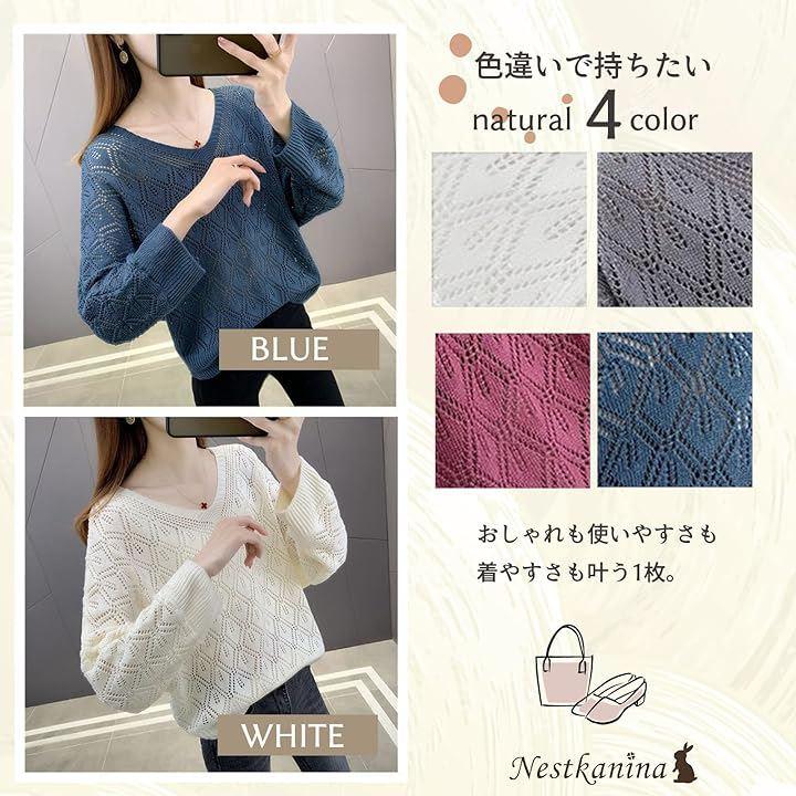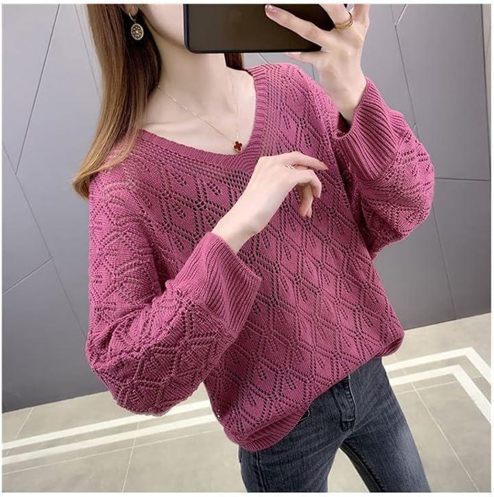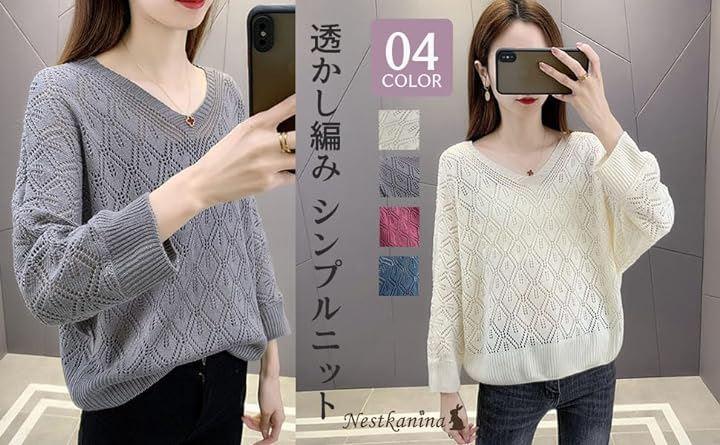 Knit, Openwork, Thin, Cut and Sew, Loose, Silhouette, Body Covering, Long Sleeve, Cute, Colorful, Stretch, Loose V-Neck, Tops, Women's, TSHT021