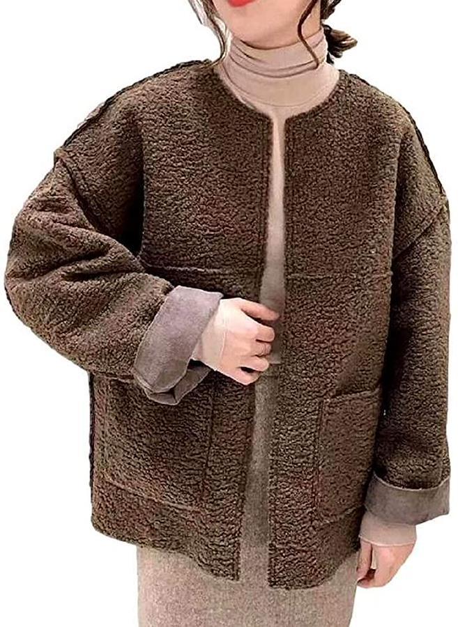 ・ネックラインが綺麗なノーカラーで、カジュアルアイテムながら女性らしさ併せ持ったボアショートコートです。