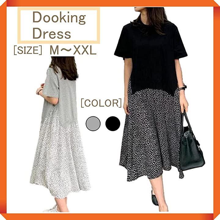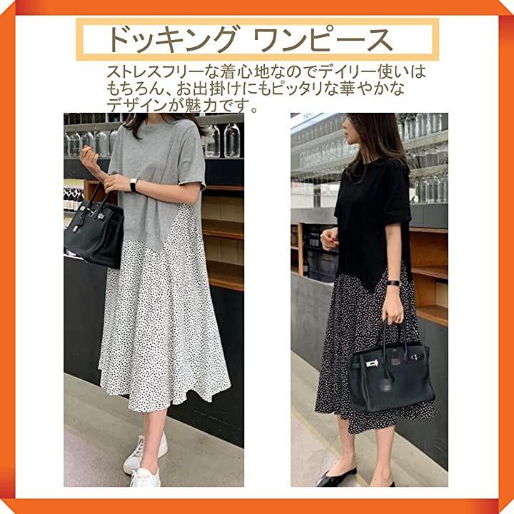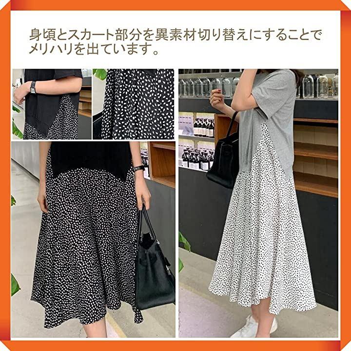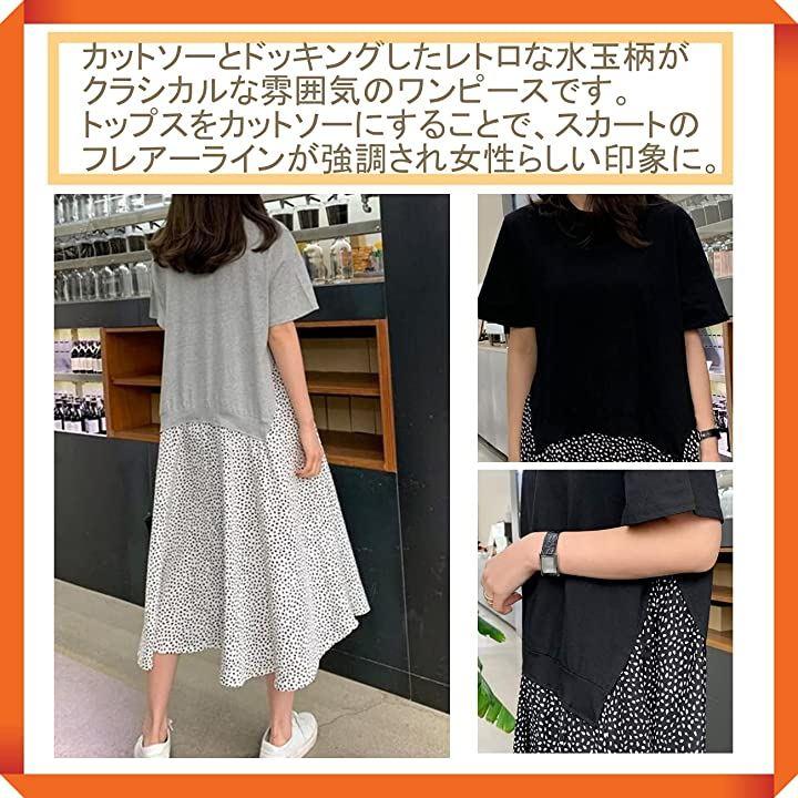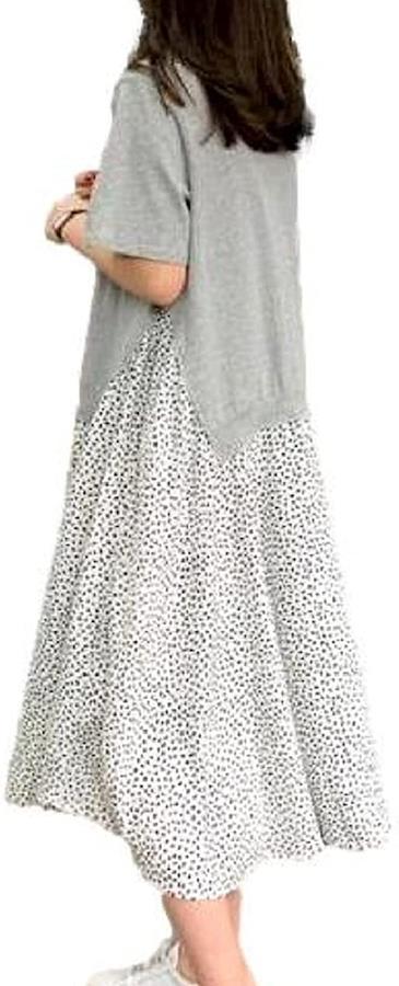 [1/2style(ニブンノイチスタイル)]半袖大人カットソー水玉ドッキングワンピースレディース