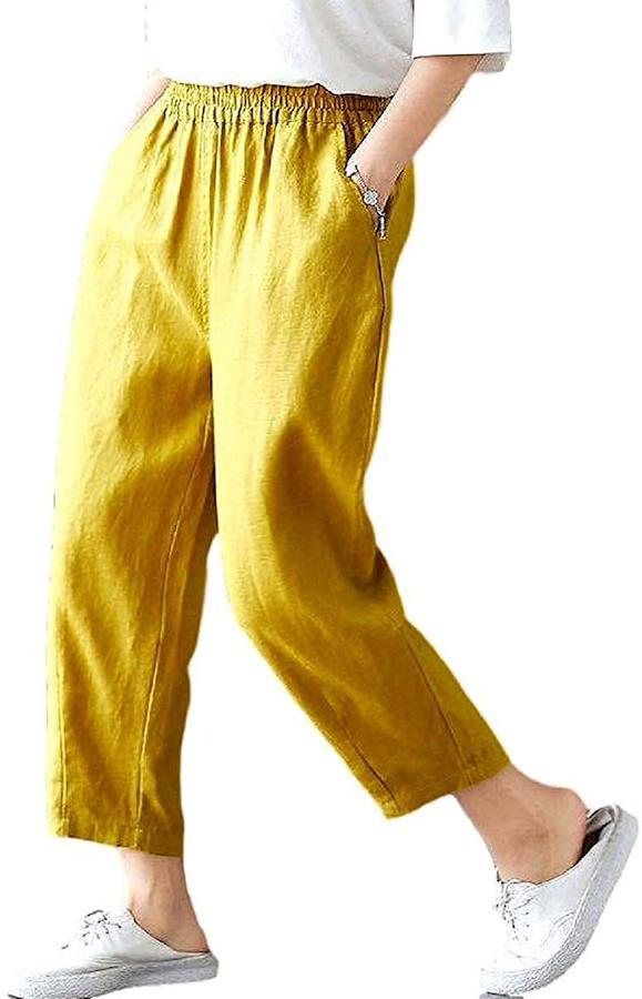 春夏の汗ばむ季節もさらりと爽やかに着られる綿麻のゴム入りテーパードパンツ。