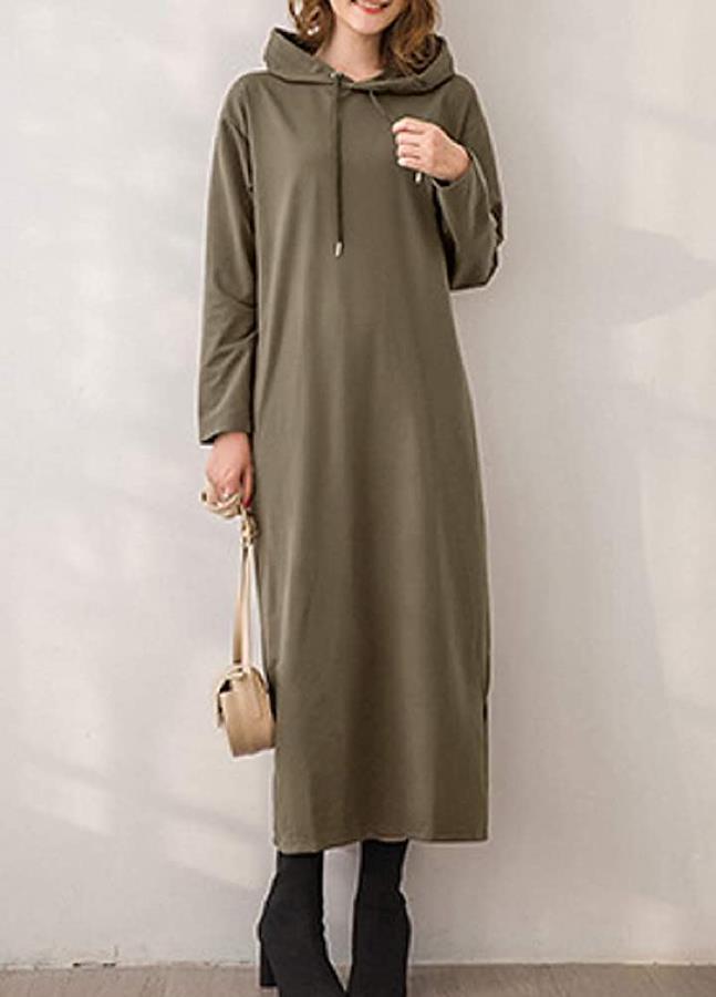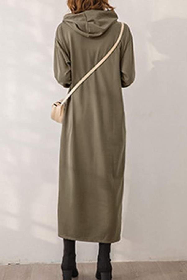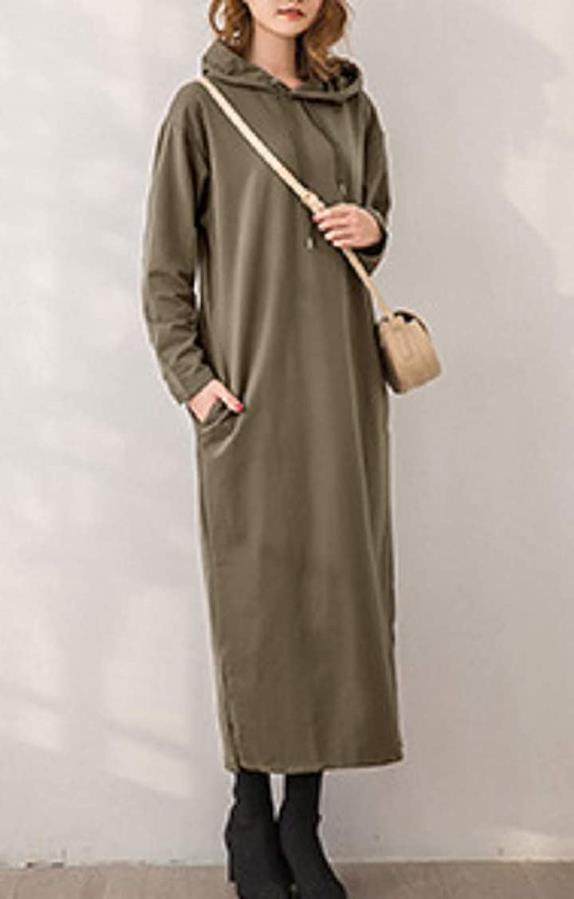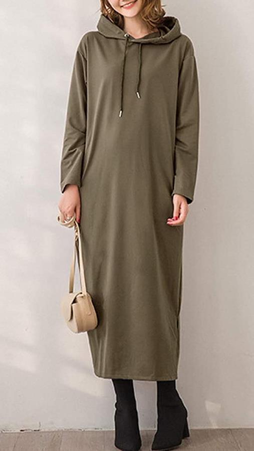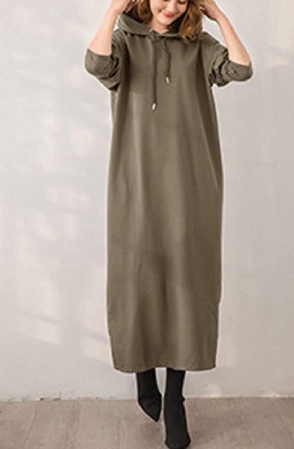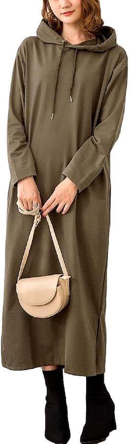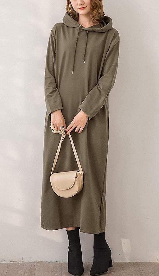 腰脇にポケットが付いているので、すっきりとした印象になり、シンプルコーデでもお洒落に決まる大人のパーカーワンピ・