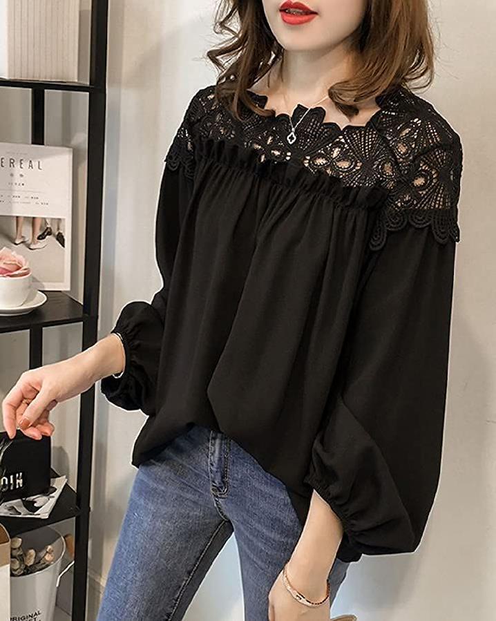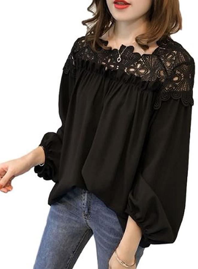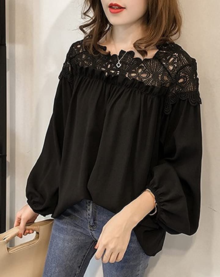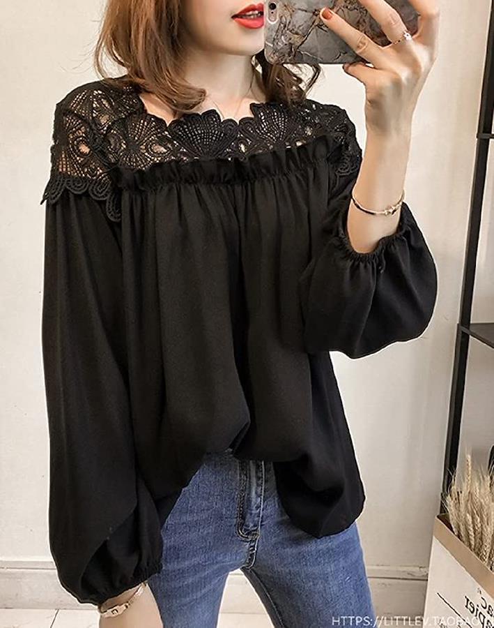シンプルながらネックにあしらったレースが程よいアクセントに*たっぷりした分量感のシルエットが女性らしく1枚でこなれた印象に。