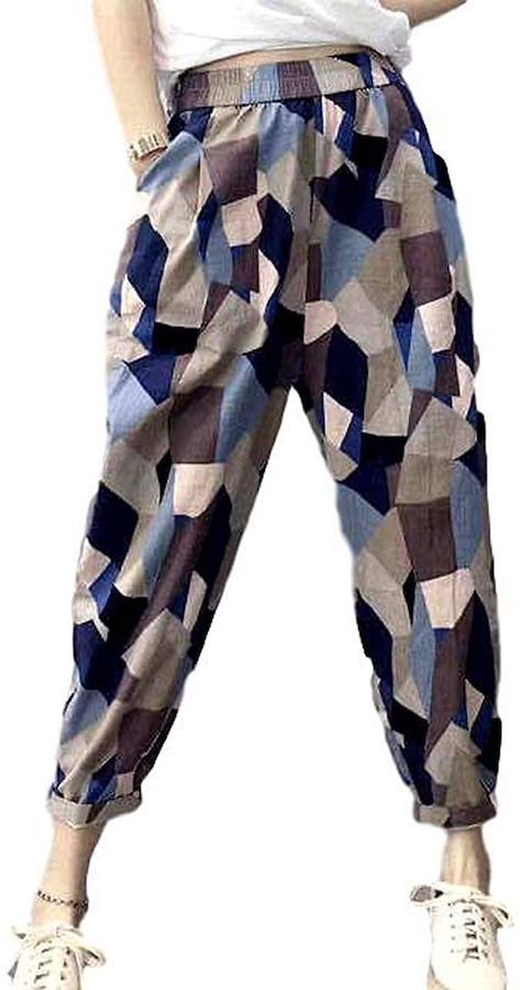 [1/2style(ニブンノイチスタイル)]柄麻テーパードチノウエストゴムパンツレディース