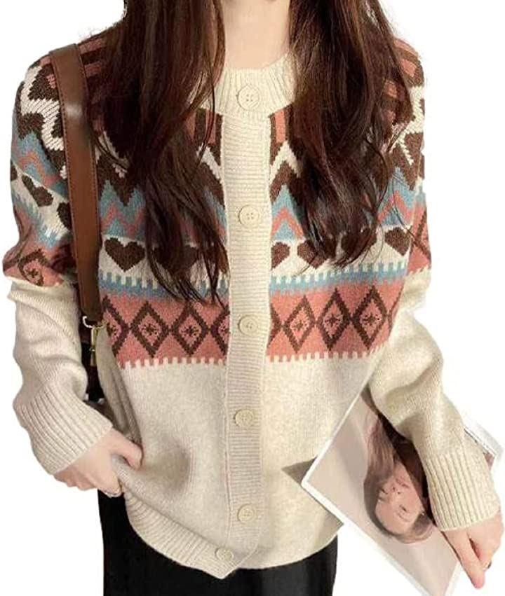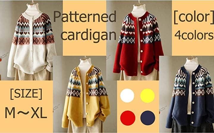 柄ニットでヴィンテージ感*柄ニットでヴィンテージ感とルーズなフィットでレイヤードにぴったりのアイテムです:優しいデザインでノルディック柄は冬を感じさせてくれて、カラー配色や質感がきれいなカーディガン。