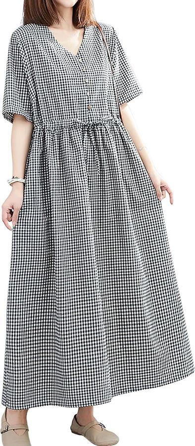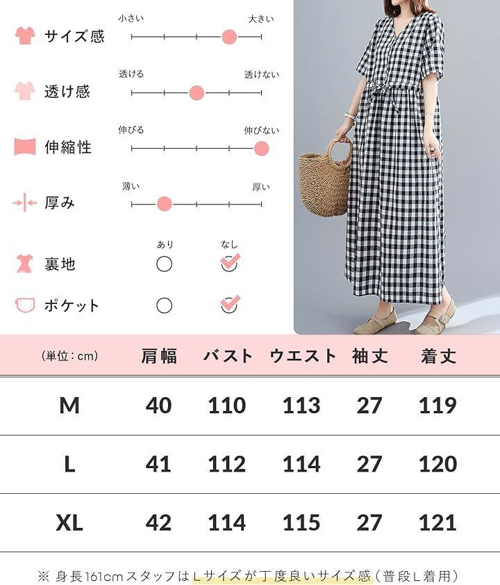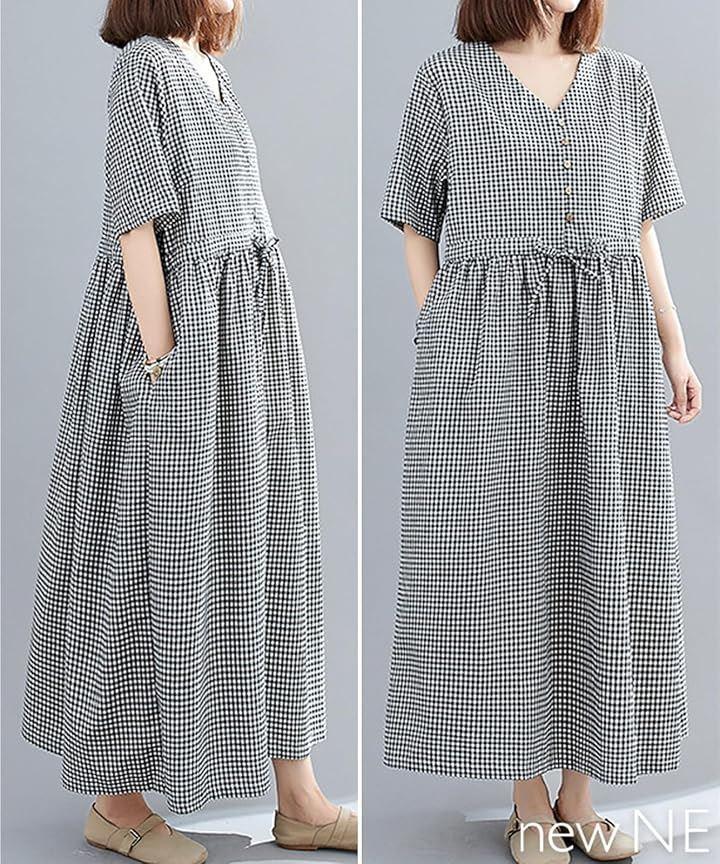 「軽やかに決まるチェックワンピ」目を引くギンガムチェックが主役級の存在感を放つロングワンピース。