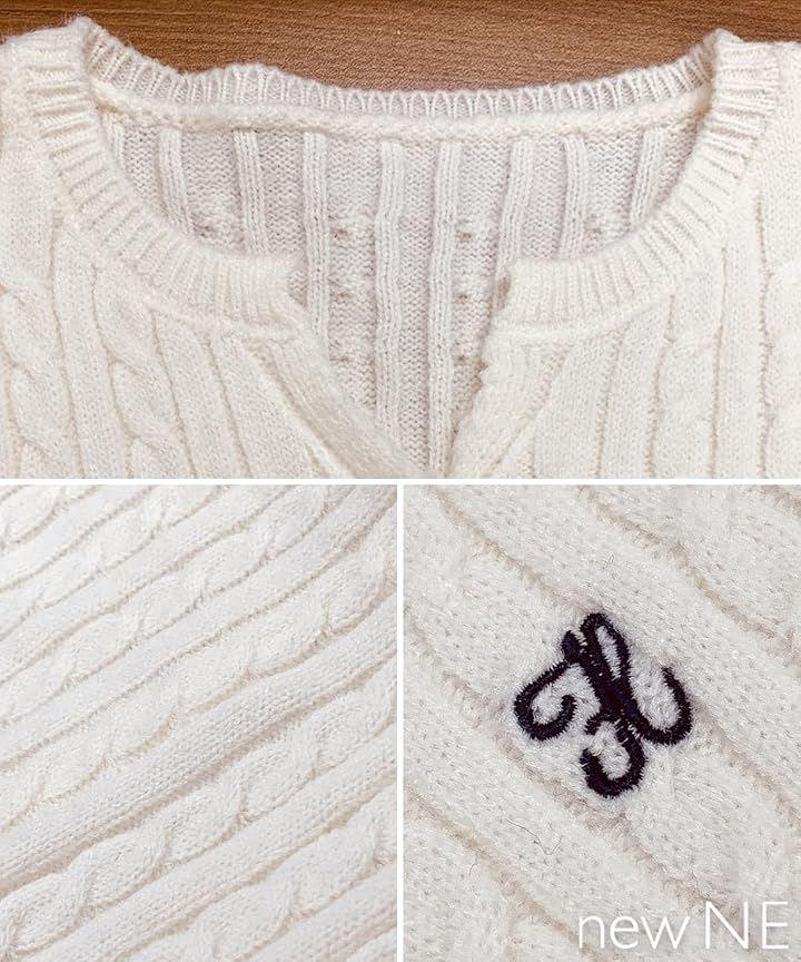 ケーブル編みがアクセントとなり、シンプルながらも立体感がある単調すぎない仕上がりに。上品さと可愛さを兼ね備えた一枚です。