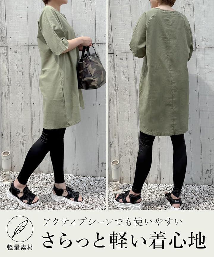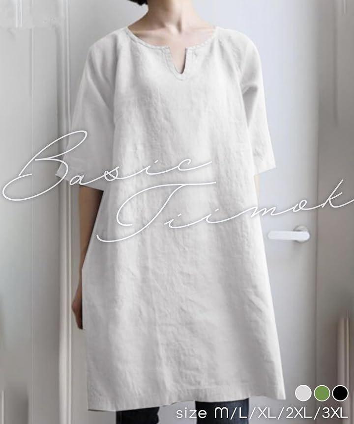 「シンプルながら女性らしさが際立つデザイン」自然の風合いを大切にしたさらさら素材のチュニックは、夏の暑さに、涼しさと気持ちの良い着心地を与えてくれます。