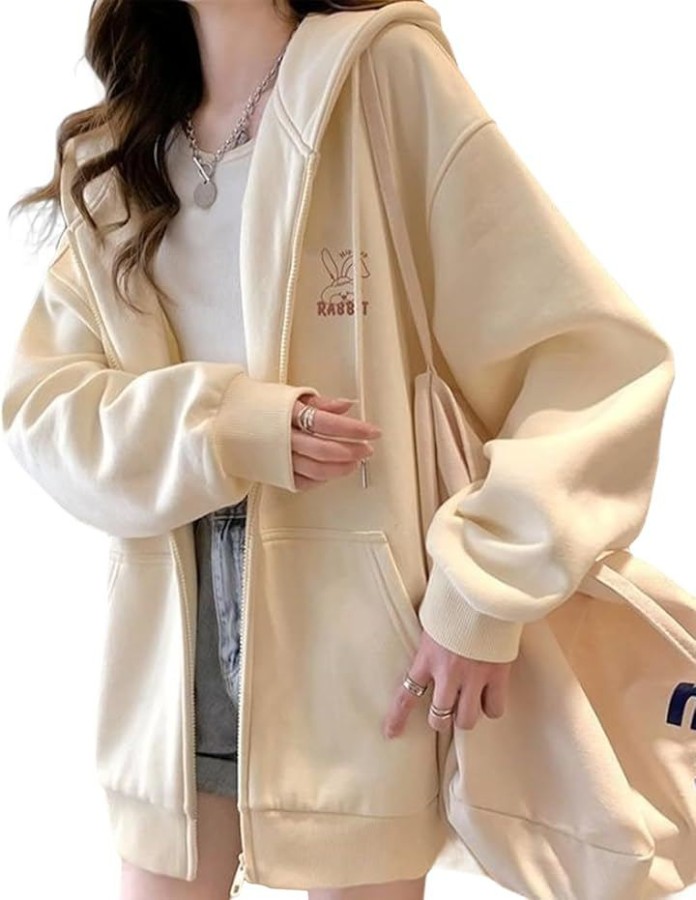 「胸元のラビットロゴがキュートなビッグパーカー」シンプルなワンカラーデザインが何とでも合わせやすいフルジップパーカーが登場しました。