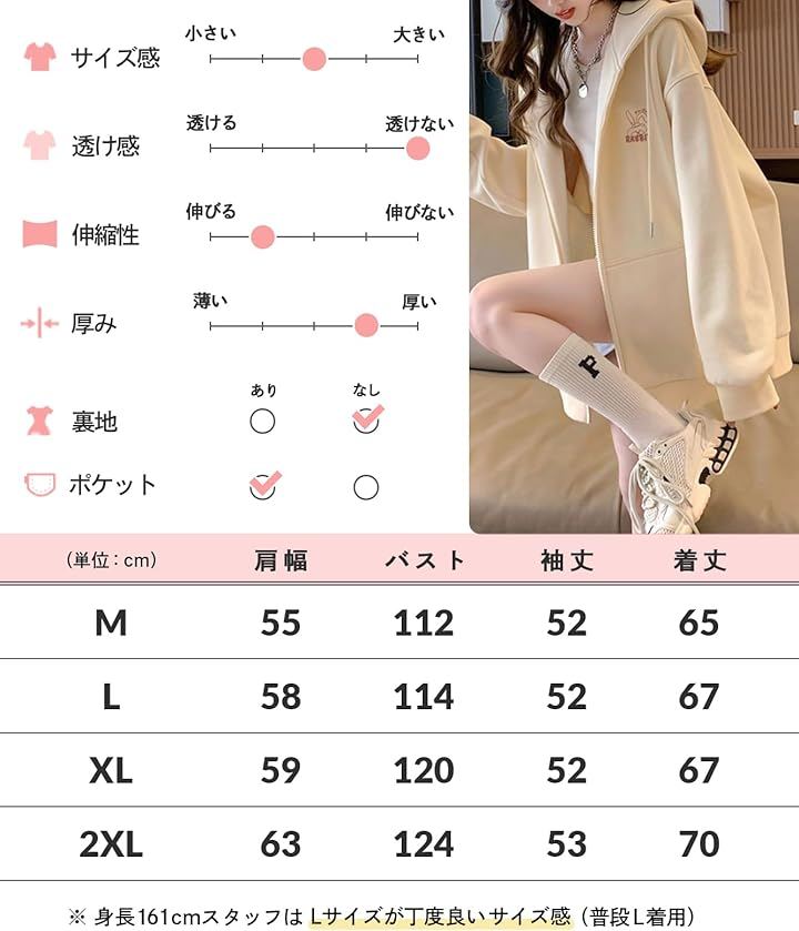 サイズ:肩幅/胸囲/袖丈/着丈 (M)55/112/52/65 (L)58/114/52/67 (XL)59/120/52/67 (2XL)63/124/53/70 *寸法は平置きにて計測し、若干の誤差がある場合がございます。