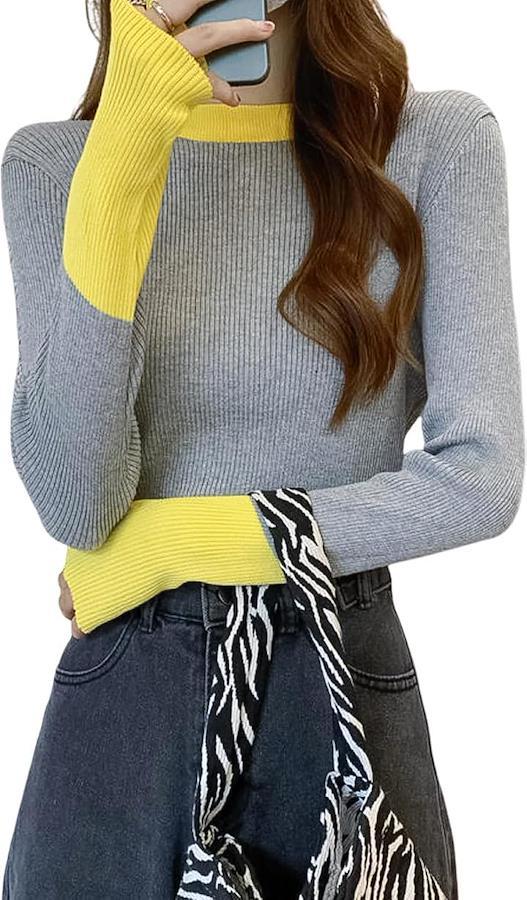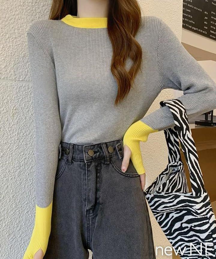 「目を惹くバイカラートップス」発色の良い切り替えデザインがぱっと目を惹く、バイカラーデザインのニットトップスの登場です。
