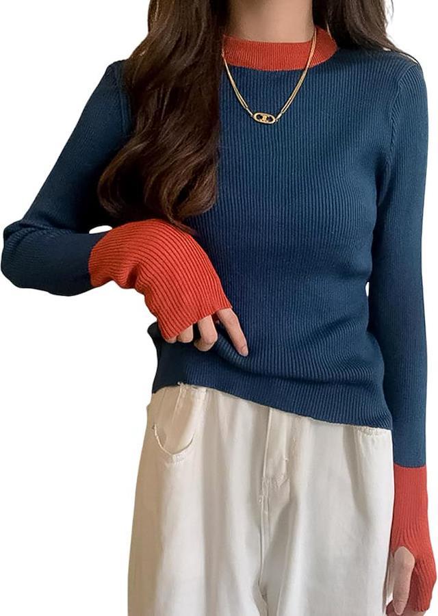 「目を惹くバイカラートップス」発色の良い切り替えデザインがぱっと目を惹く、バイカラーデザインのニットトップスの登場です。
