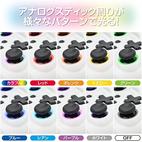 特徴1:アナログスティックの周囲をRGBカラーでライトアップ。気分がアガるコントローラです。・グラデーションなどカラー変更が可能です。