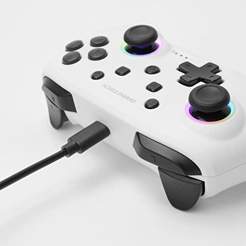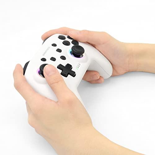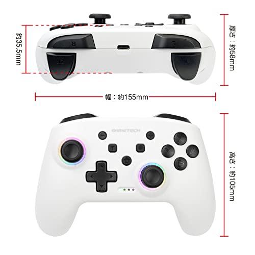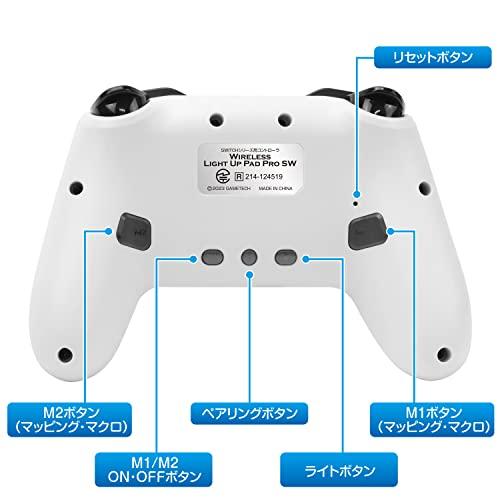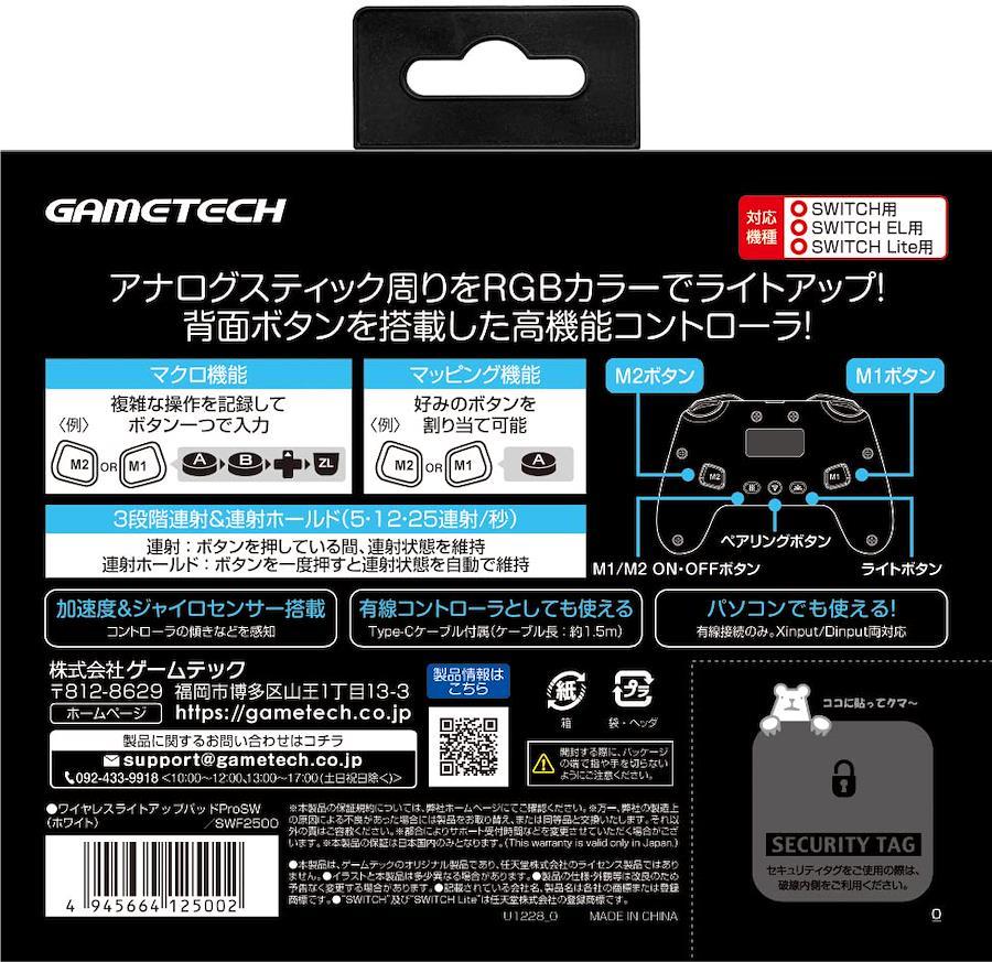 特徴1:アナログスティックの周囲をRGBカラーでライトアップ。気分がアガるコントローラです。特徴2:マクロ・マッピングの設定が可能な2つの背面ボタンを搭載してます。特徴3:連射・連射ホールド機能、加速度・ジャイロセンサーも搭載。*有線接続時はパソコンでも使えます(Xinput、Dinput両対応)*有線接続時や充電に使用可能なType-Cケーブル1.5mが付属しております